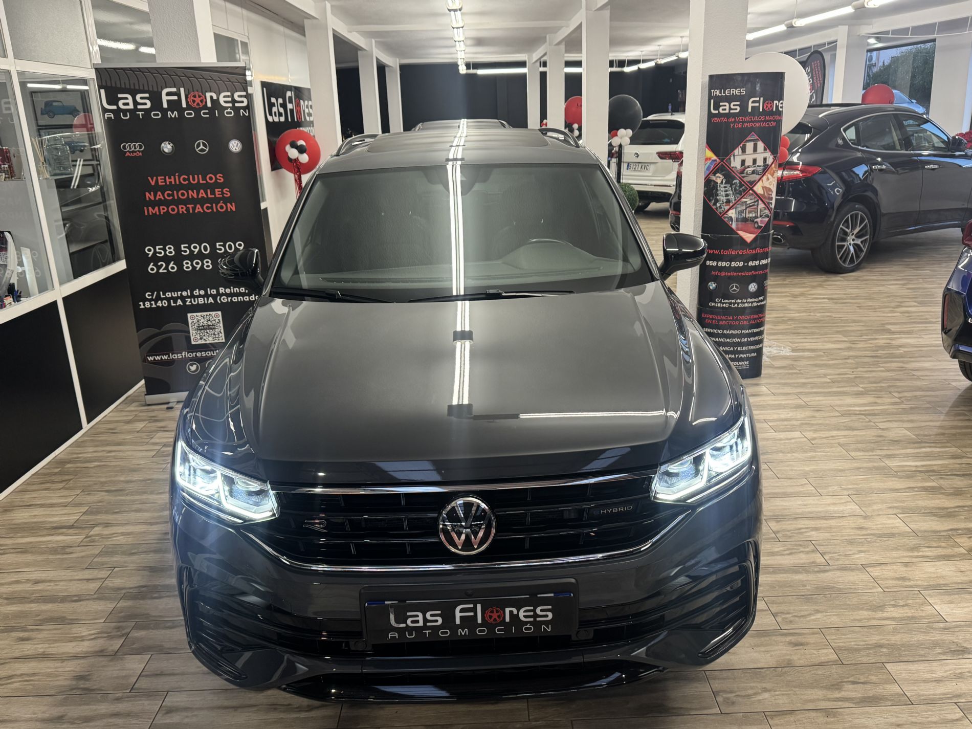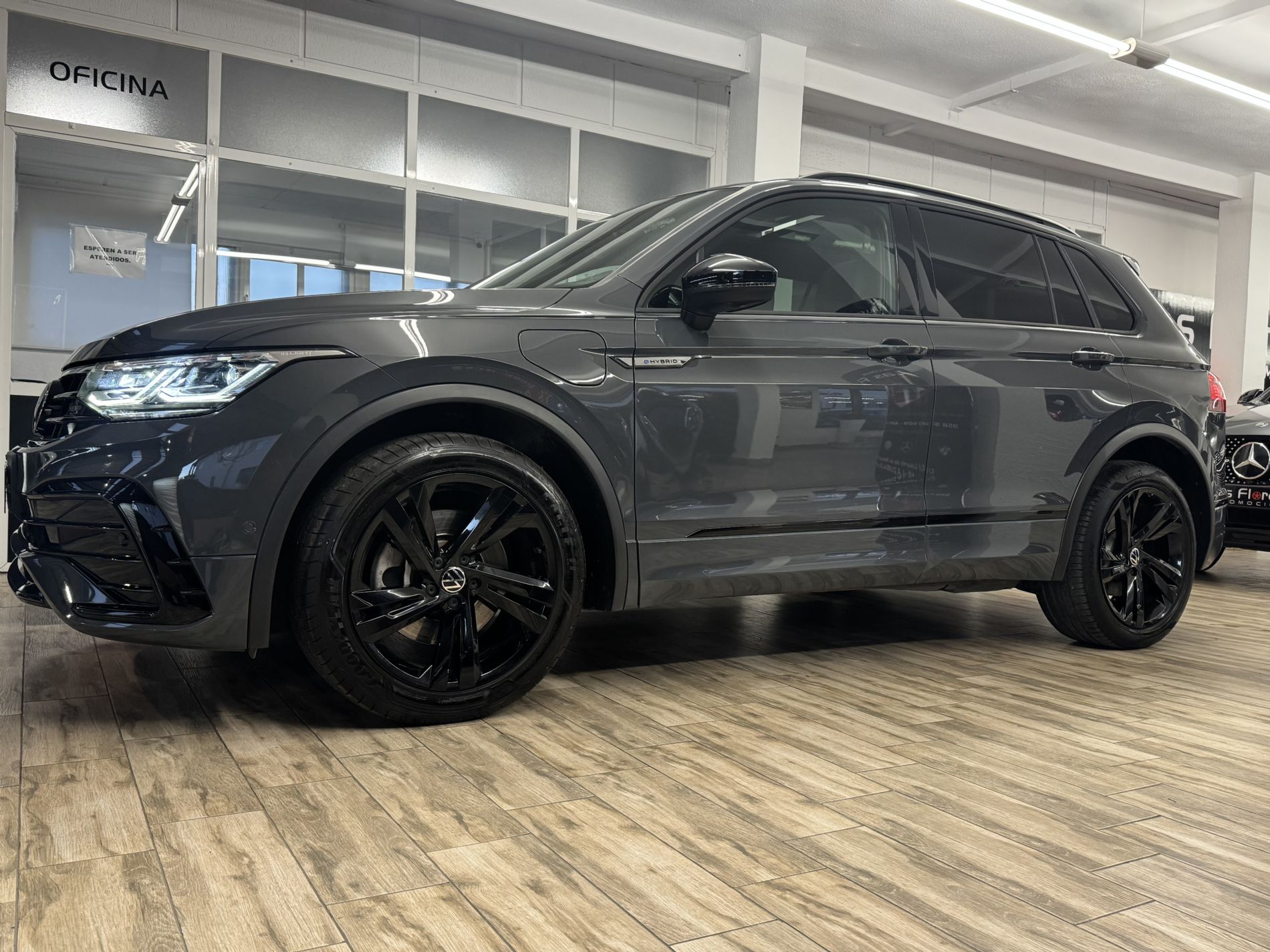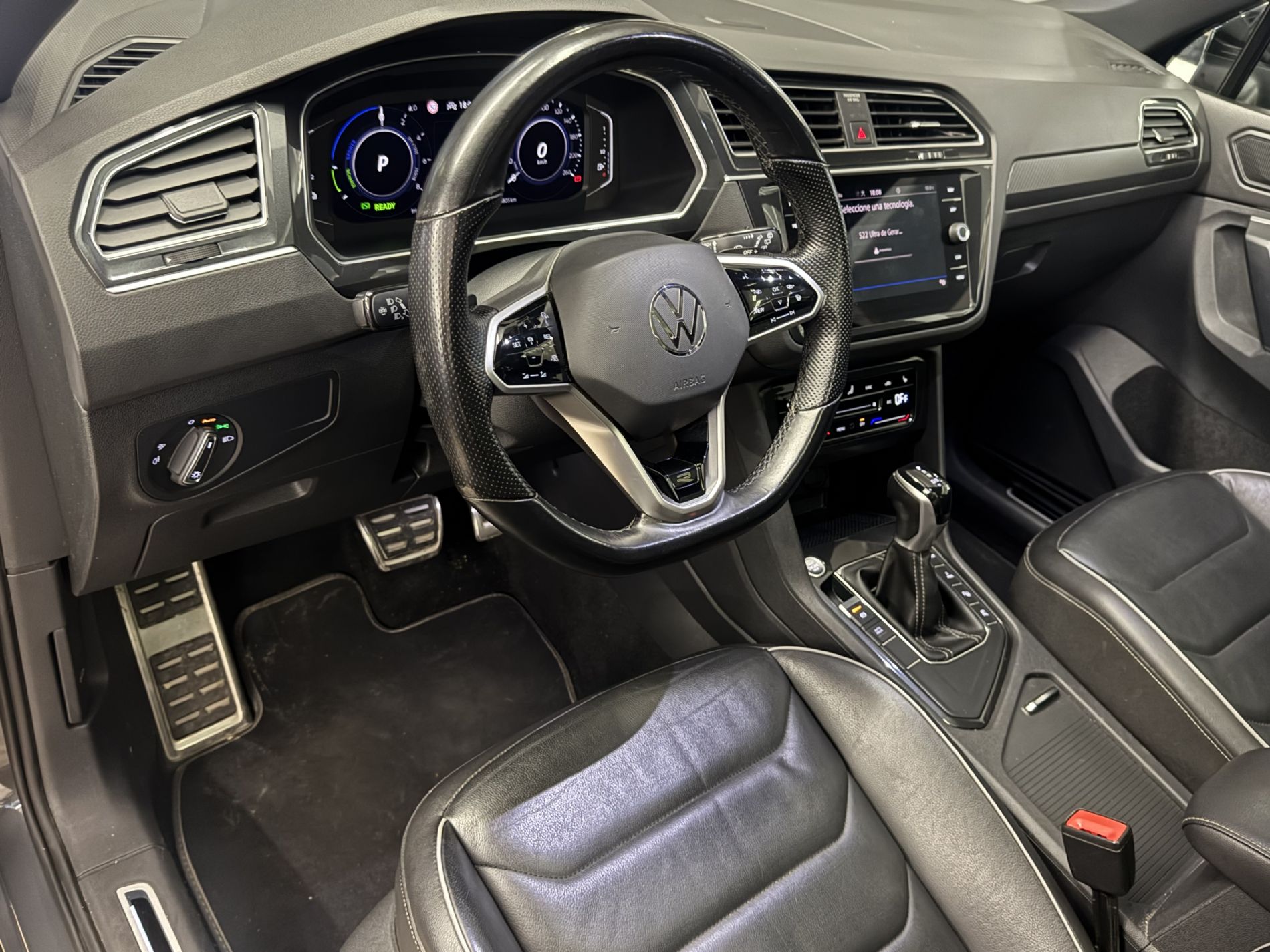 Este Volkswagen Tiguan R-Line eHybrid combina prestaciones deportivas con eficiencia gracias a su motorización híbrida enchufable de 245 CV. La etiqueta CERO emisiones permite circular sin restricciones en zonas de bajas emisiones, ofreciendo hasta 49 km de autonomía eléctrica.Este SUV destaca por su acabado deportivo R-Line con tapicería en cuero Vienna negro y el exclusivo Paquete Diseño Black Style que realza su estética. El equipamiento incluye sistema de visión periférica Area View, que facilita maniobras en espacios reducidos, y el paquete de asistencia al conductor Plus que mejora la seguridad en carretera. El interior combina deportividad y tecnología con el sistema de navegación y climatización trizona. Su sistema híbrido enchufable ofrece versatilidad para diferentes tipos de conducción, ideal para quienes buscan un vehículo versátil con buen comportamiento dinámico y acceso a zonas urbanas restringidas.